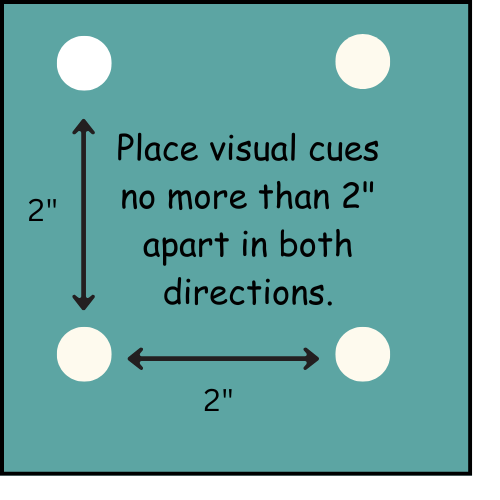 For most comprehensive protection, aim for no more than 2” between any element of the pattern (visual cue). In this above example, the elements of the pattern is a white dot.